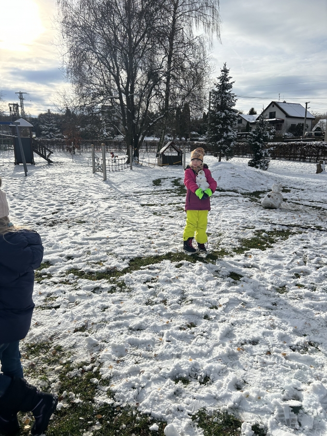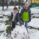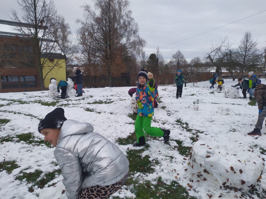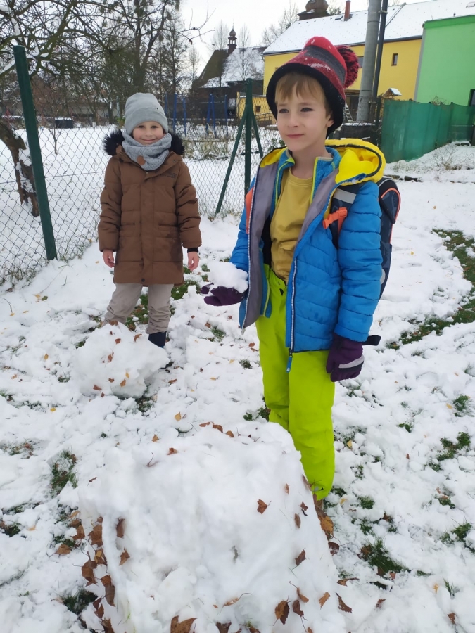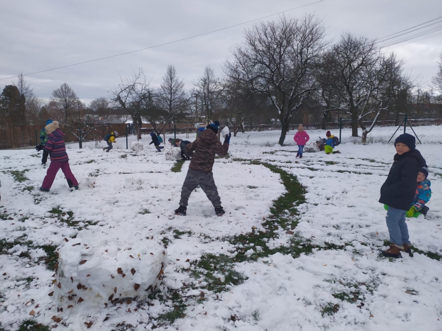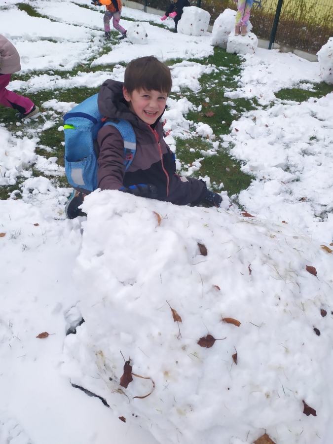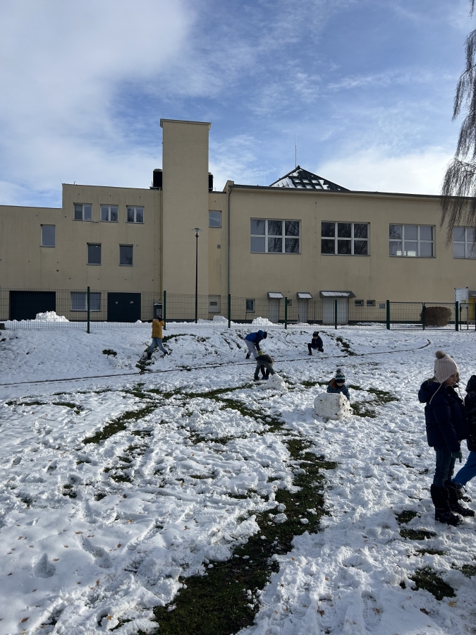 Všichni mají rádi sníh a děti obzvlášť. A když už napadne, nemůžou se ho nabažit. Ne, opravdu. Nemohly jsme je dostat zpět do školy. Děti se koulovaly, stavěly sněhuláky, jezdily na bobech. Vše co se dá ve sněhu dělat.