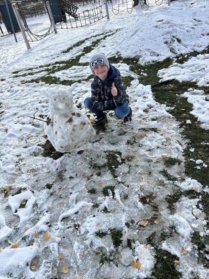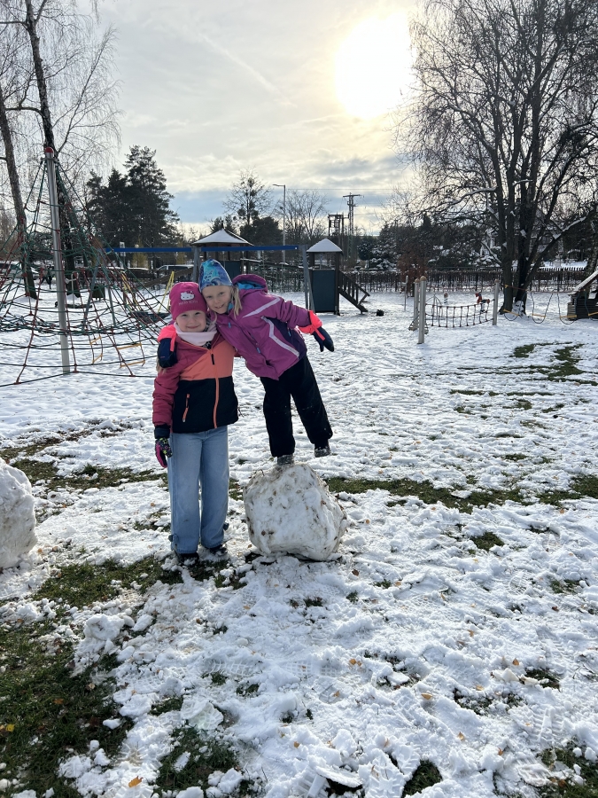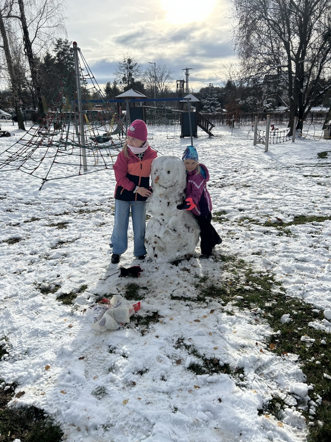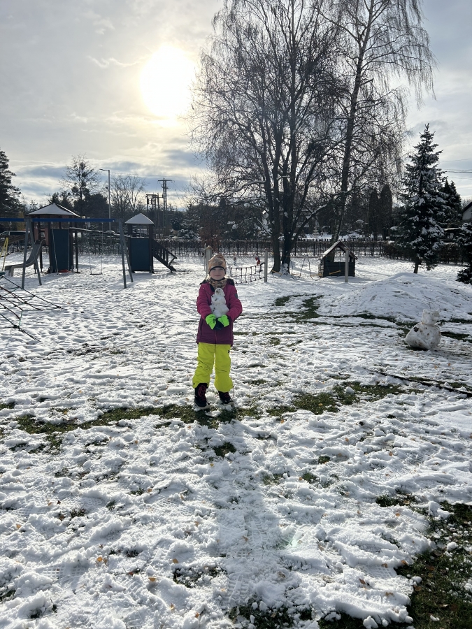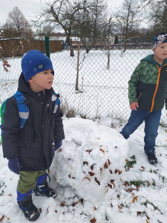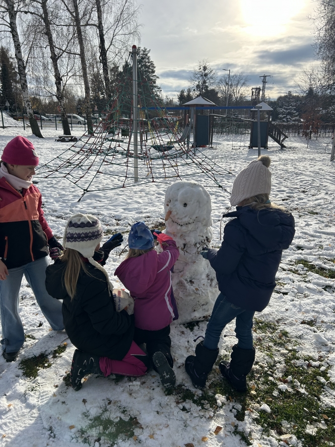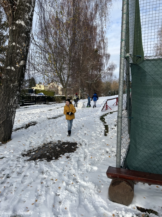Všichni mají rádi sníh a děti obzvlášť. A když už napadne, nemůžou se ho nabažit. Ne, opravdu. Nemohly jsme je dostat zpět do školy. Děti se koulovaly, stavěly sněhuláky, jezdily na bobech. Vše co se dá ve sněhu dělat.