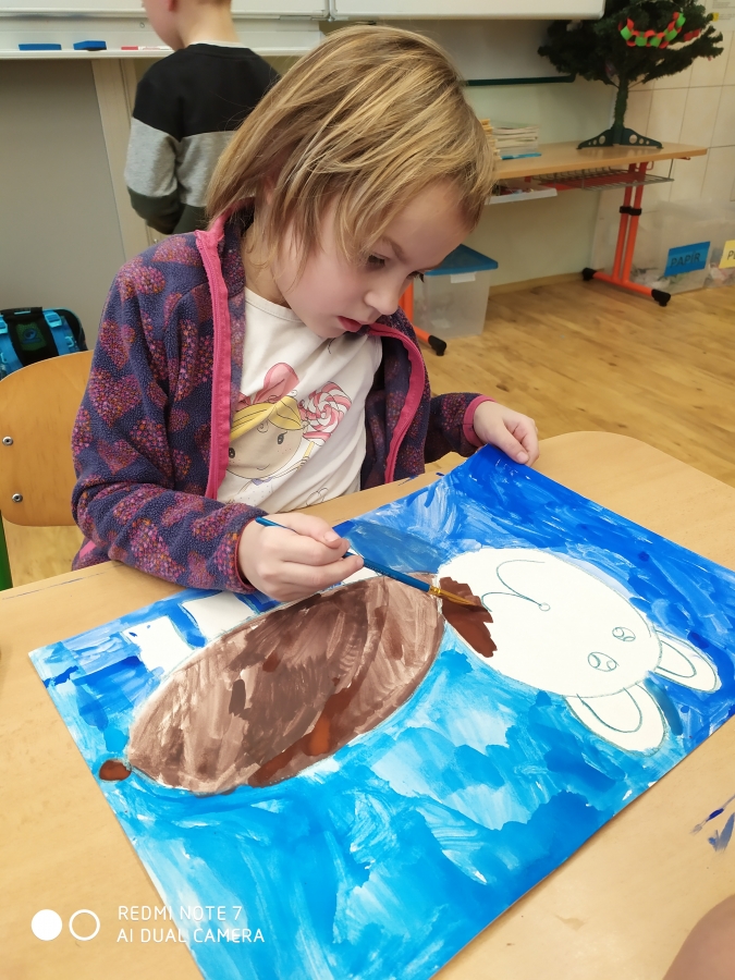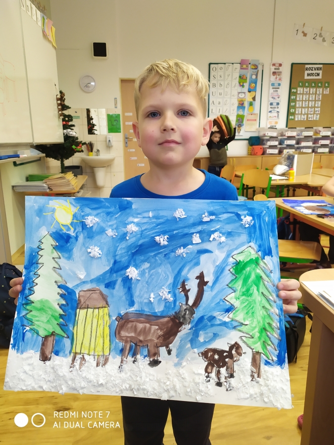 Děti v oddělení žirafek se pustily do malování se zimní tématikou.